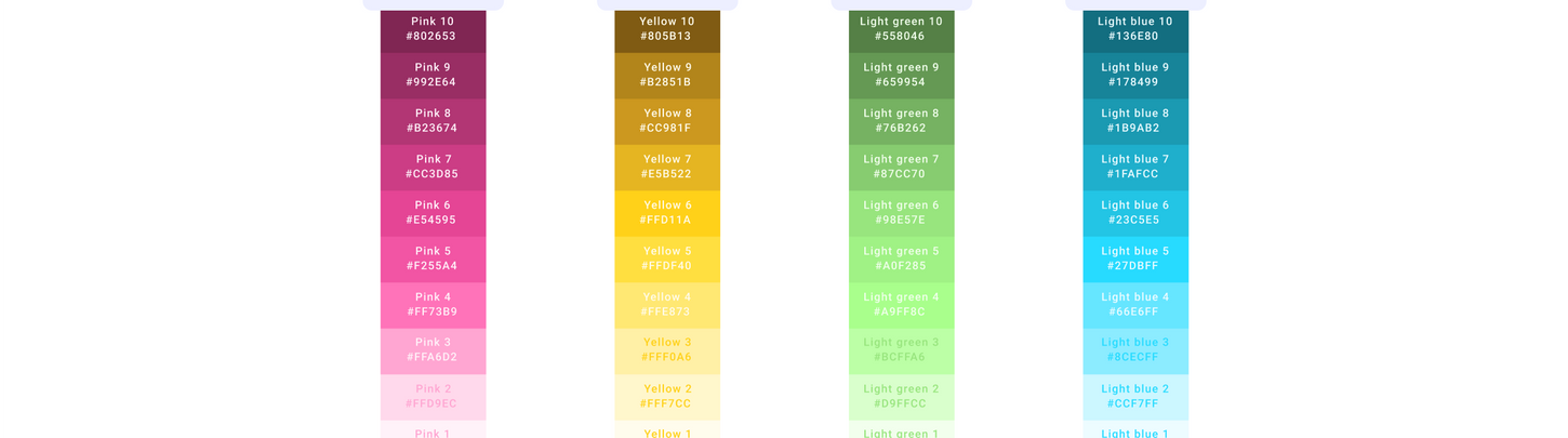 Our Illustration colour palette is a bit distinct but complimentary of our brand palette. I described the colors the HCB way because it’s more intuitive for us to think of colors as organized by three attributes: